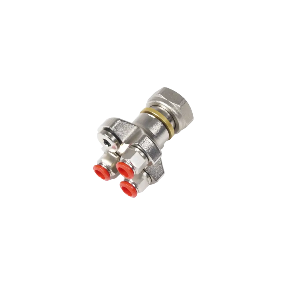“Push-Fit” splitters maken het mogelijk om meerdere buizen van 10mm aan te sluiten op 1 verdelergroep. Dit kan het benodigd aantal groepen omlaag brengen, omdat het niet nodig is om uit te gaan van een groep per buis.