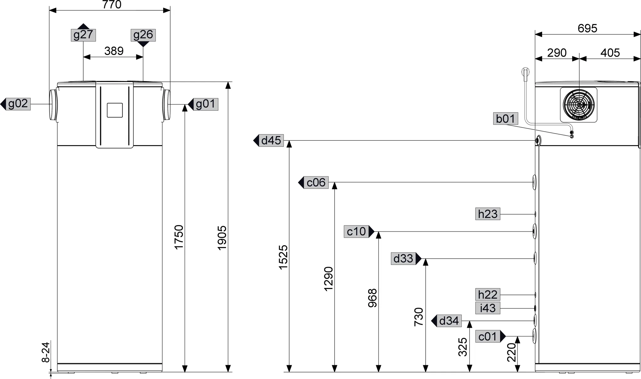 • De variant SOL kan ook geïnstalleerd worden met een thermische zonne-installatie of een externe warmteopwekker (bijvoorbeeld een cv-ketel)